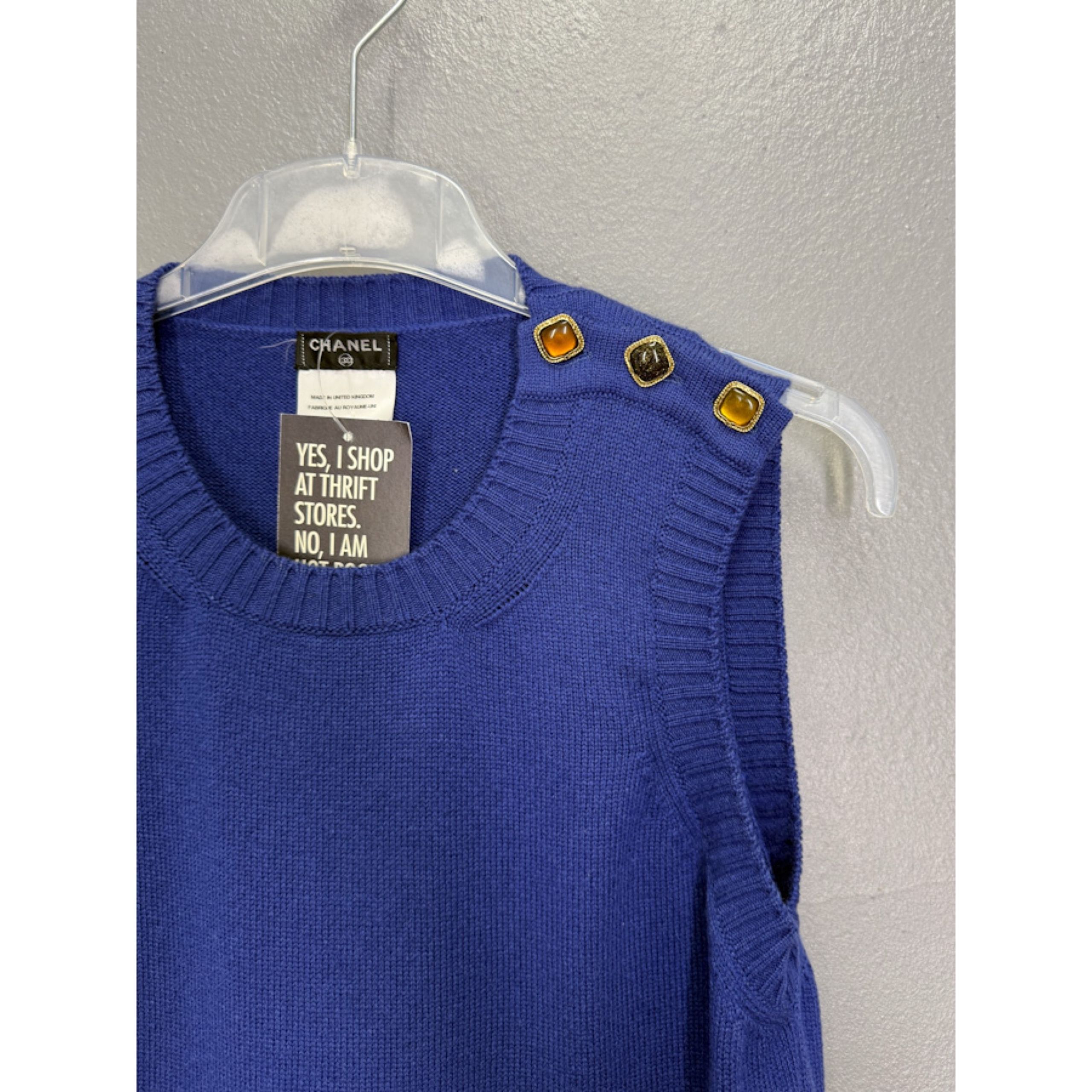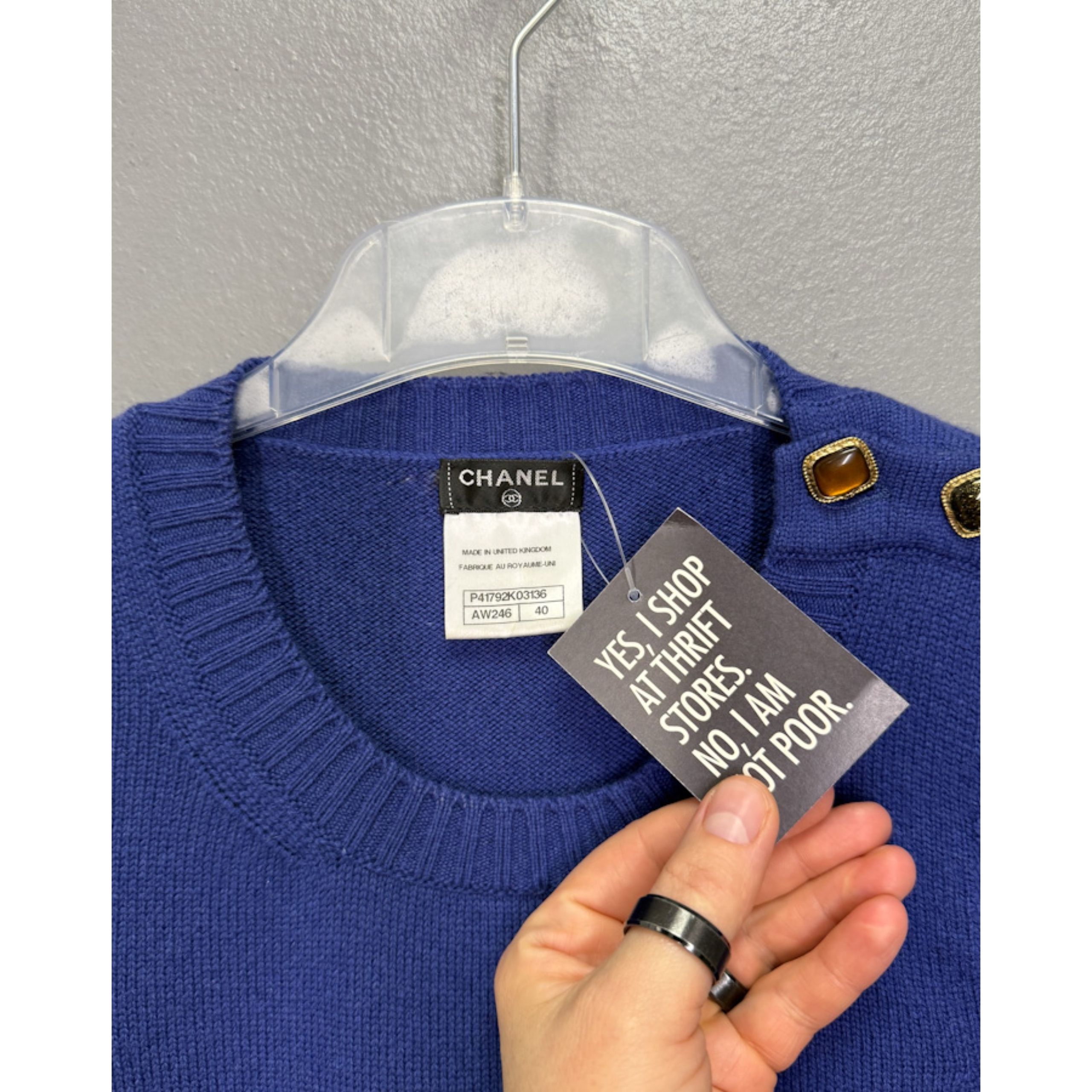 Minimalistlik lõige rõhutab kangast – 100% kašmiir tagab erakordse pehmuse, samas kui kuldpruunid dekoratiivnööbid õlal lisavad vintage-glamuurset viidet Chaneli signatuurstiilile.