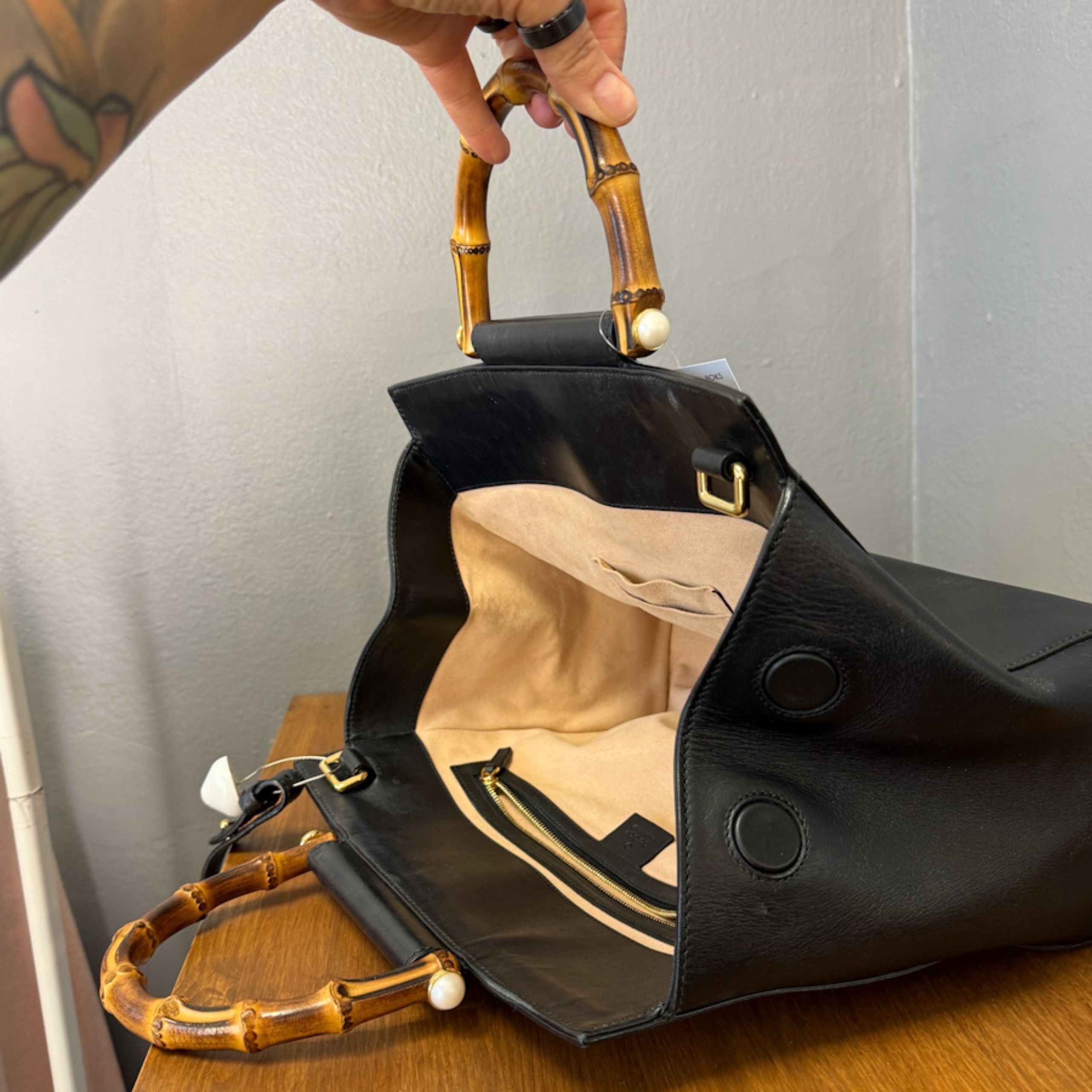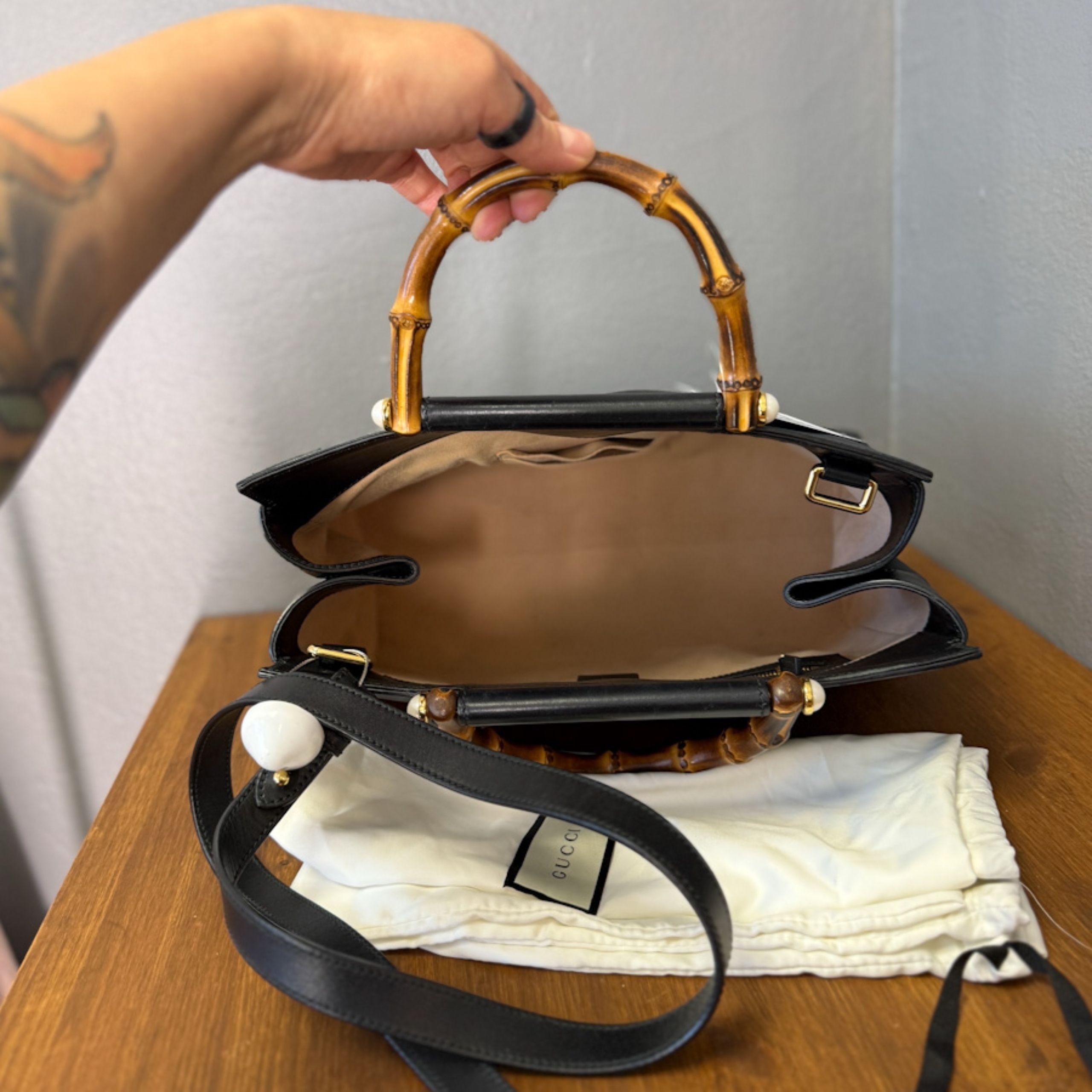 Kott kuulub Alessandro Michele 2017. aasta Cruise kollektsiooni, kus loovjuht tõi esile brändi ajaloolised sümbolid ja lisas neile kaasaegse poeetilisuse. Pärlitega viimistletud bambuskäepide on selle kollektsiooni üks äratuntavamaid elemente – elegantne viide loodusele ja klassikalisele naiselikkusele.