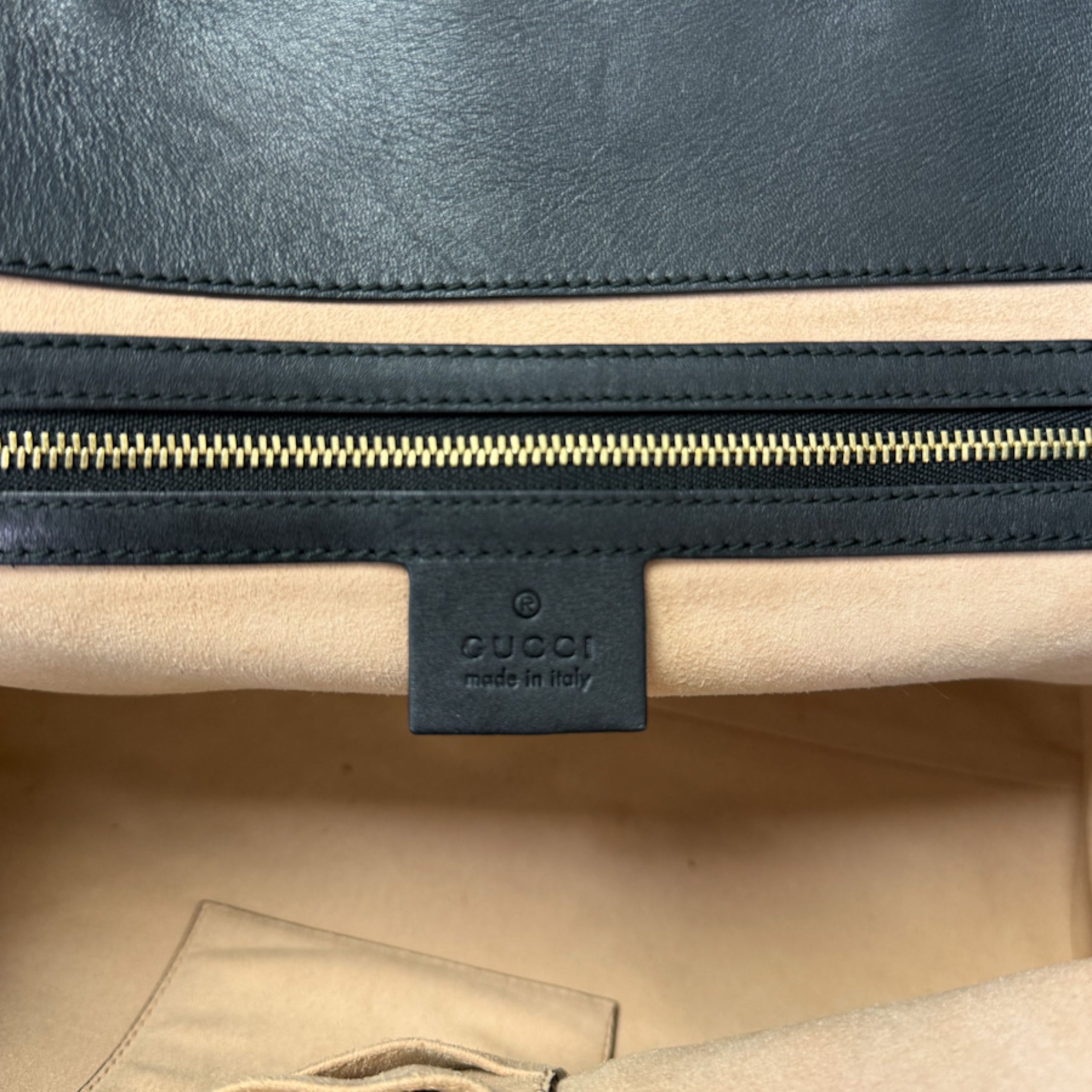 Sisemuses tõmblukuga sektsioon ja avatud taskud – praktiline ja kaunis ühtaegu. Viimistletud kullatooni metall-detailidega, mis rõhutavad Guccile omast ajatut elegantsi.