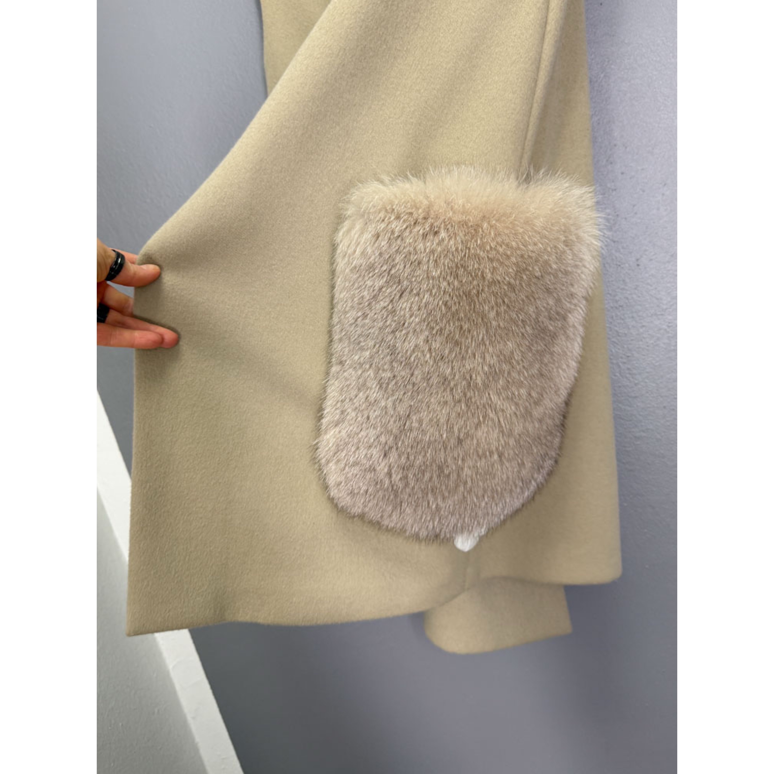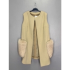Uueväärne pikk villane vest luksuslike karusnahast taskutega.