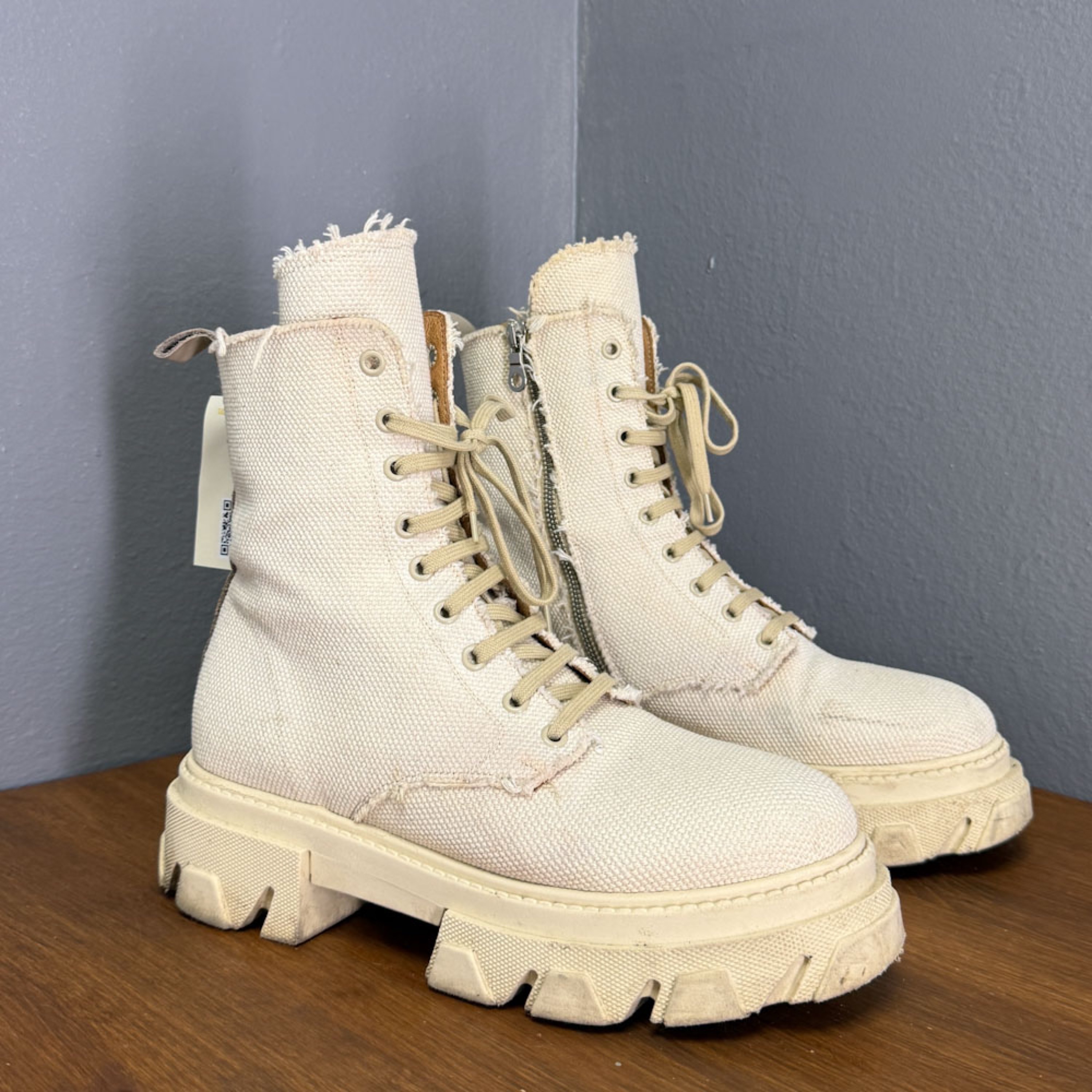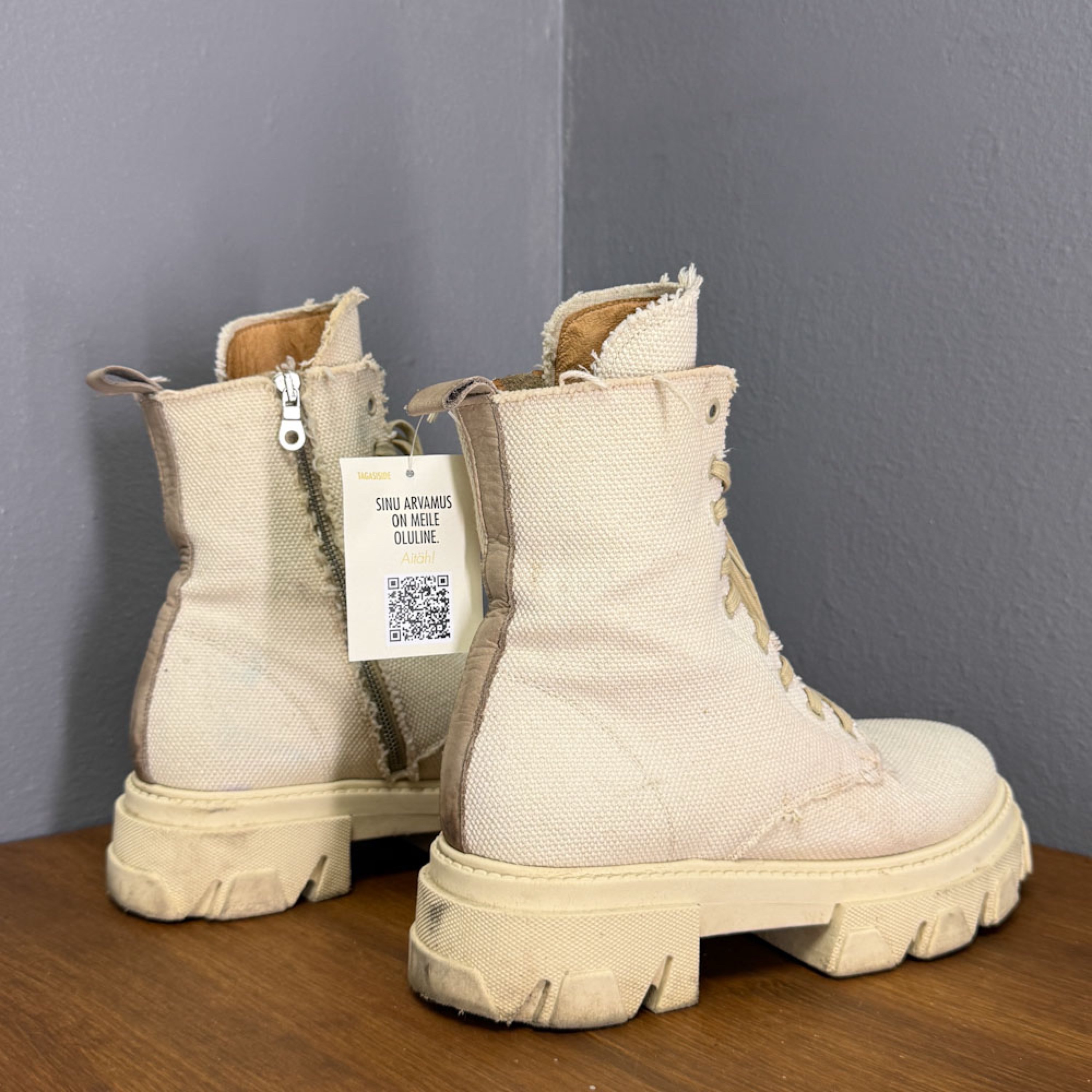 Heas seisukorras tekstiilist käsitsi valmistatud VAMSO statement saapad.